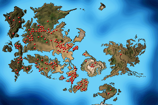Map of the known lands and seas of Tsunami. Click on a region to view information on it.